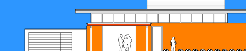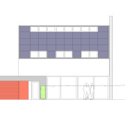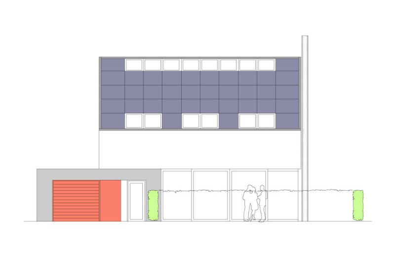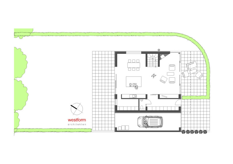 Das Erdgeschoss ist auf der Straßenseite eingerückt und bietet so Platz für