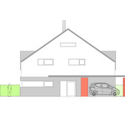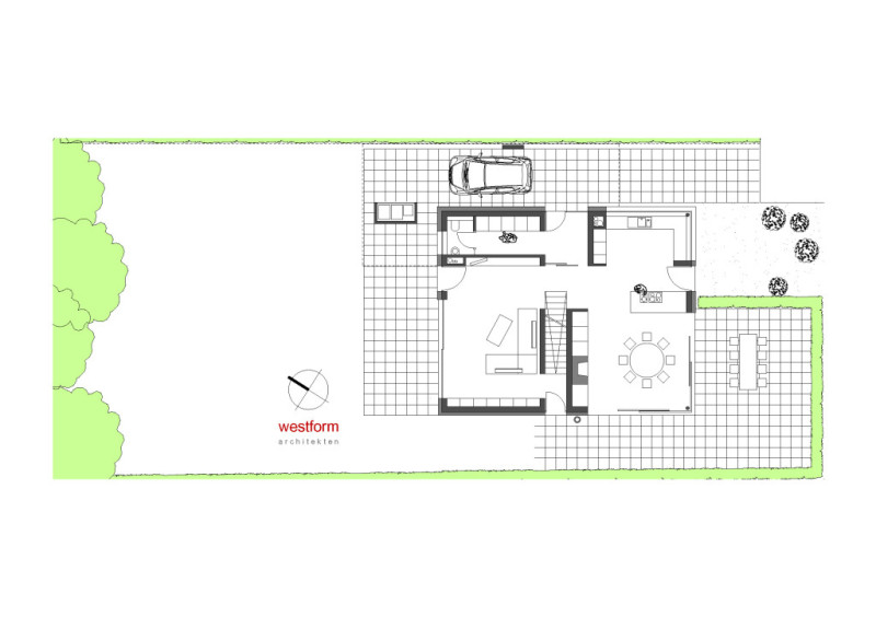 bereich orientiert sich zum Garten. Essbereich und Küche öffnen sich mit
