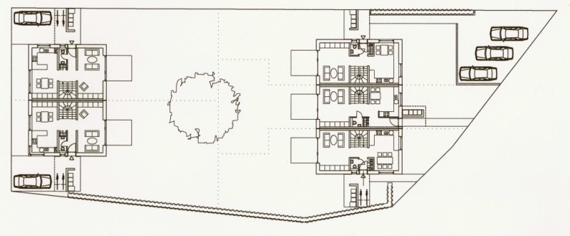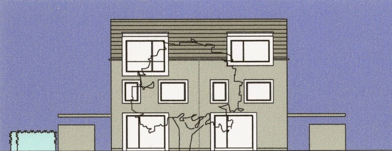 abgebrochen. Dort entstehen drei Reihenhäuser mit je 125